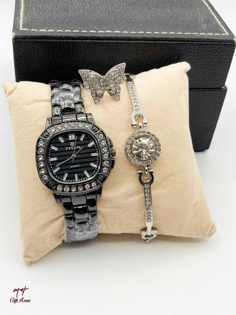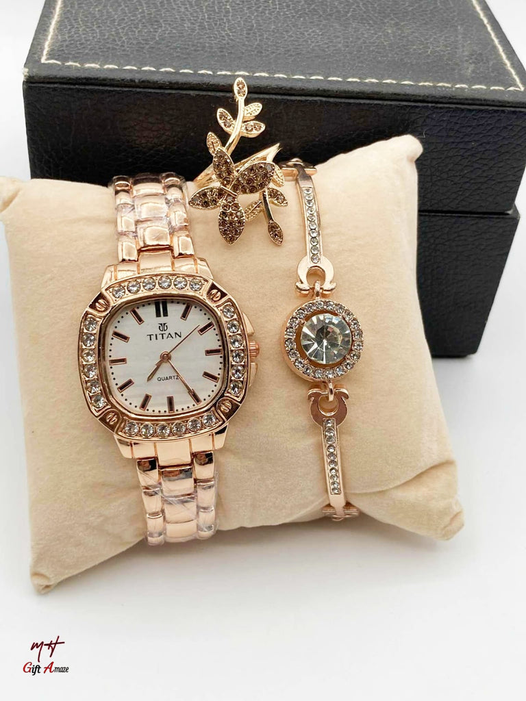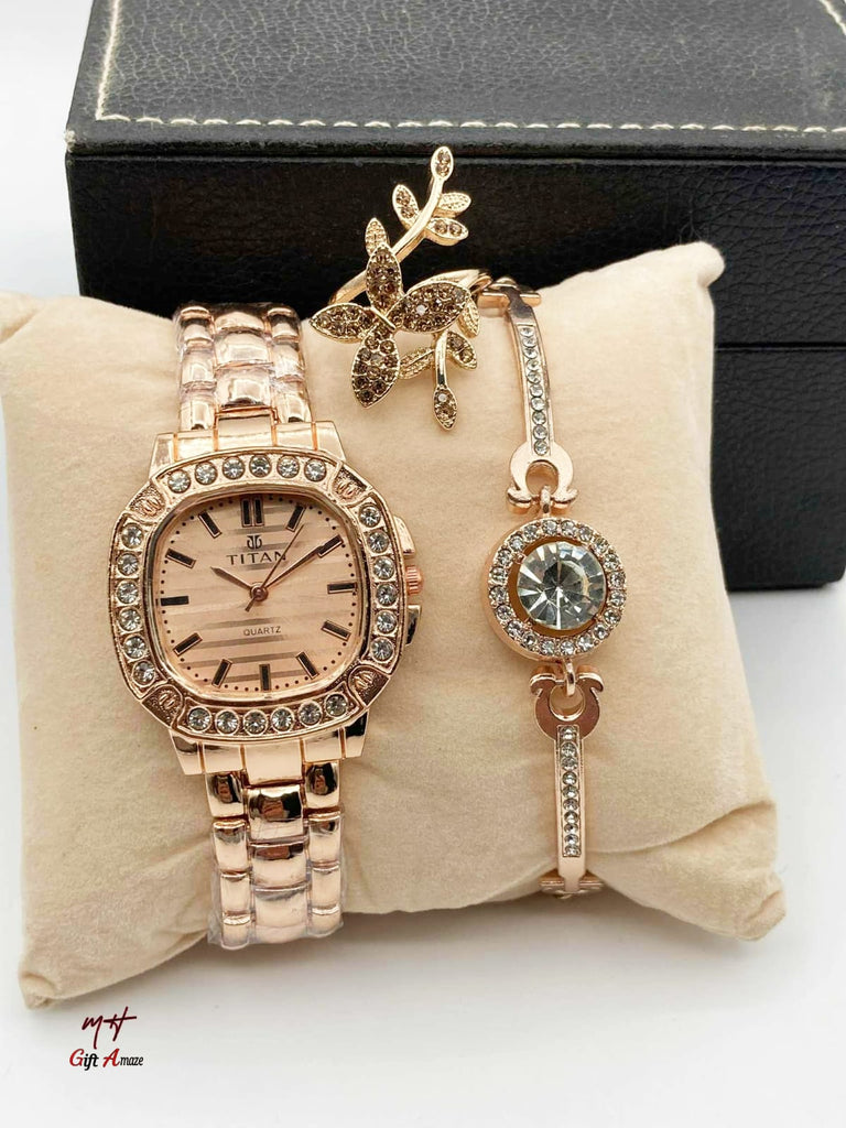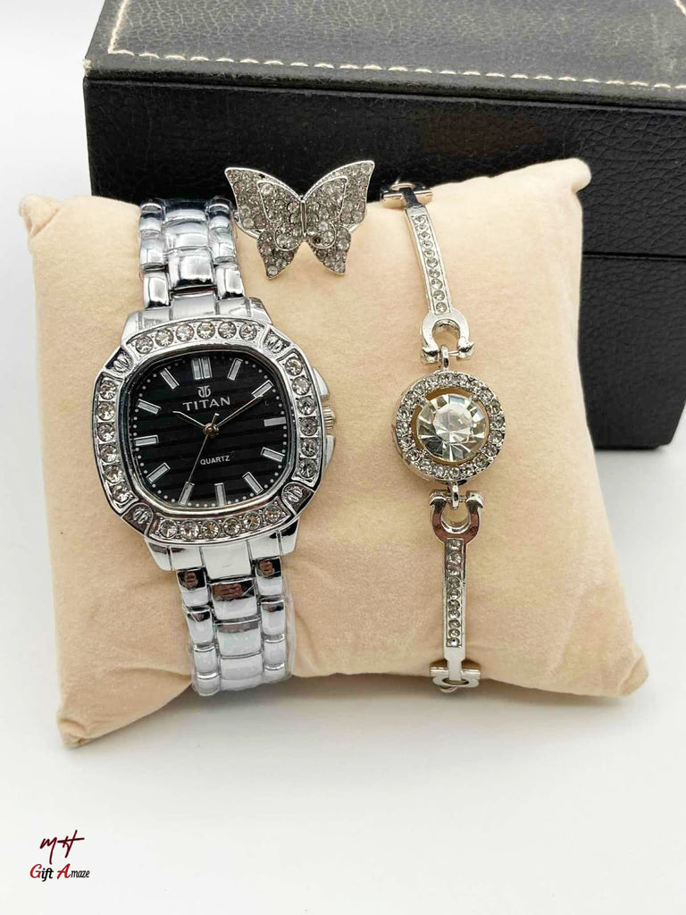 Elevate your style with the Titan Ladies Jewellery set featuring a sophisticated watch, an elegant bracelet, and a matching ring. Crafted with precision, this ensemble combines timeless design with quality materials, offering both functionality and refined adornment. Perfect for professional and formal occasions, it enhances any outfit while providing reliable timekeeping. This coordinated set reflects expert craftsmanship and attention to detail, making it a distinguished choice for women who appreciate both beauty and practicality.